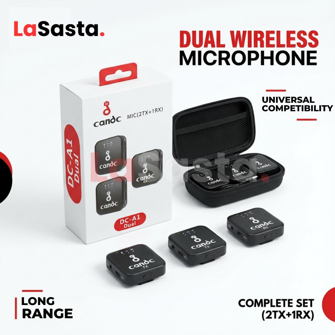 ✔️ Dual wireless microphone system with 2 transmitters (2TX) and 1 receiver (1RX)